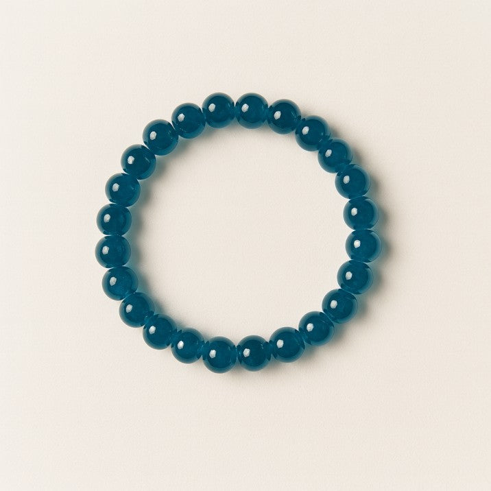 An elegant blue beaded bracelet handmade with love. Crafted with glossy round beads in a deep ocean-inspired blue, this bracelet is simple, stylish, and versatile for everyday wear.