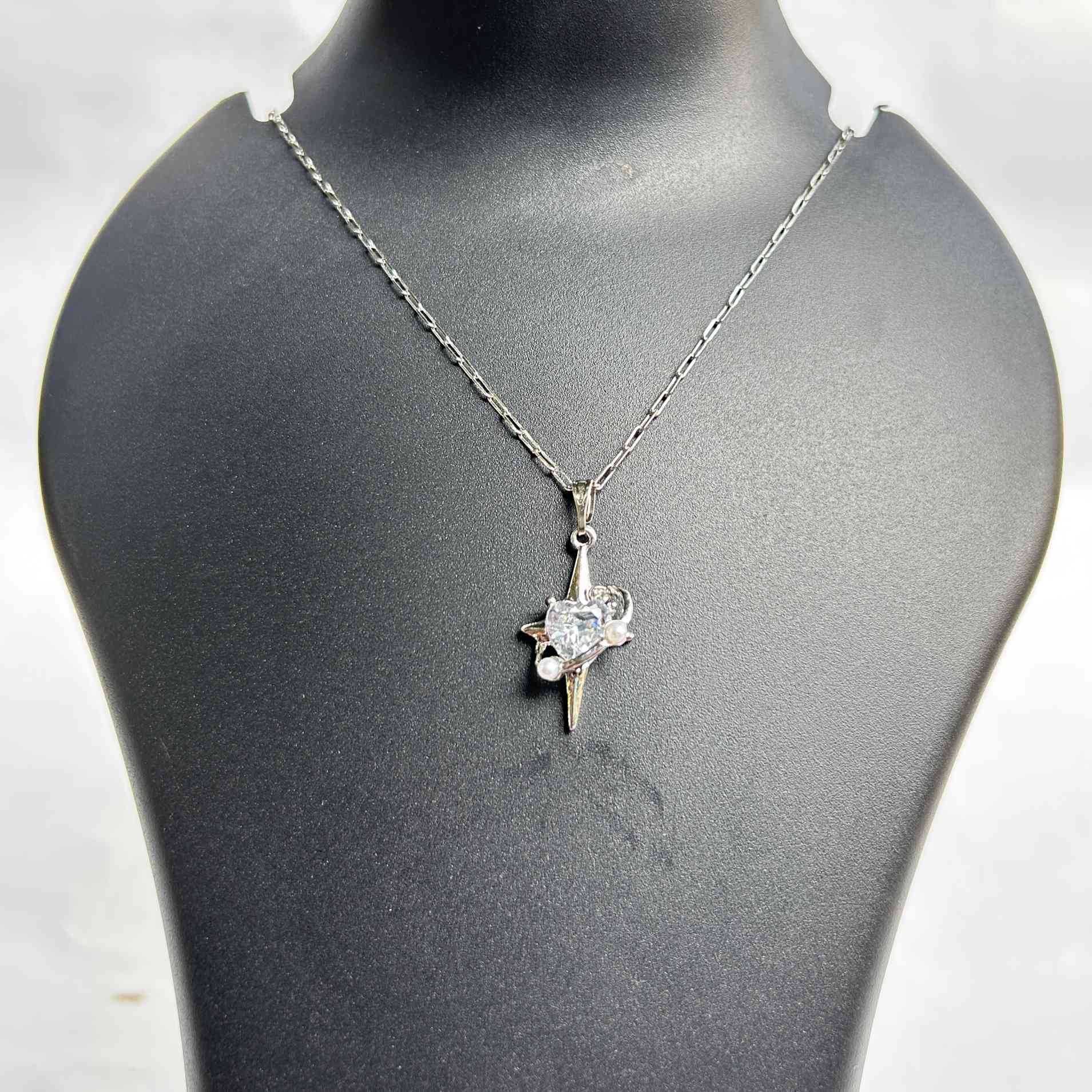 - Materials: Silver-tone alloy pendant and stainless steel chain, heart crystal (cubic zirconia or glass), small faux-pearl/stone accents.